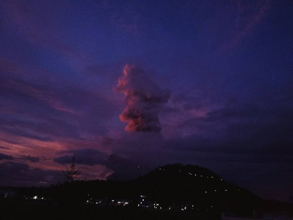 Очередное извержение вулкана Майон на Филиппинах сегодня вечером.