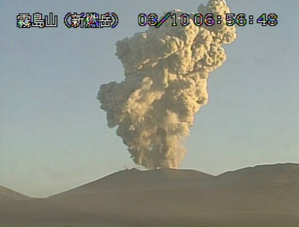 10 марта на вулкане Синмоэдакэ (остров Кюсю, Япония), произошло два сильных взрыва, соответственно, в 1:55 и 4:25. Вулкан выбросил столб дыма и пепла высотой 4,5 километра.
