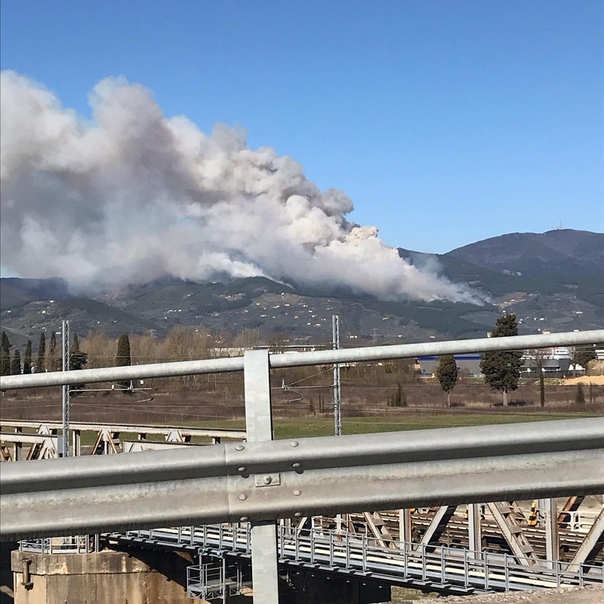 Крупный лесной пожар в горном массиве Монте Пизано ( Пиза, Тоскана, Италия, 25.02.2019)